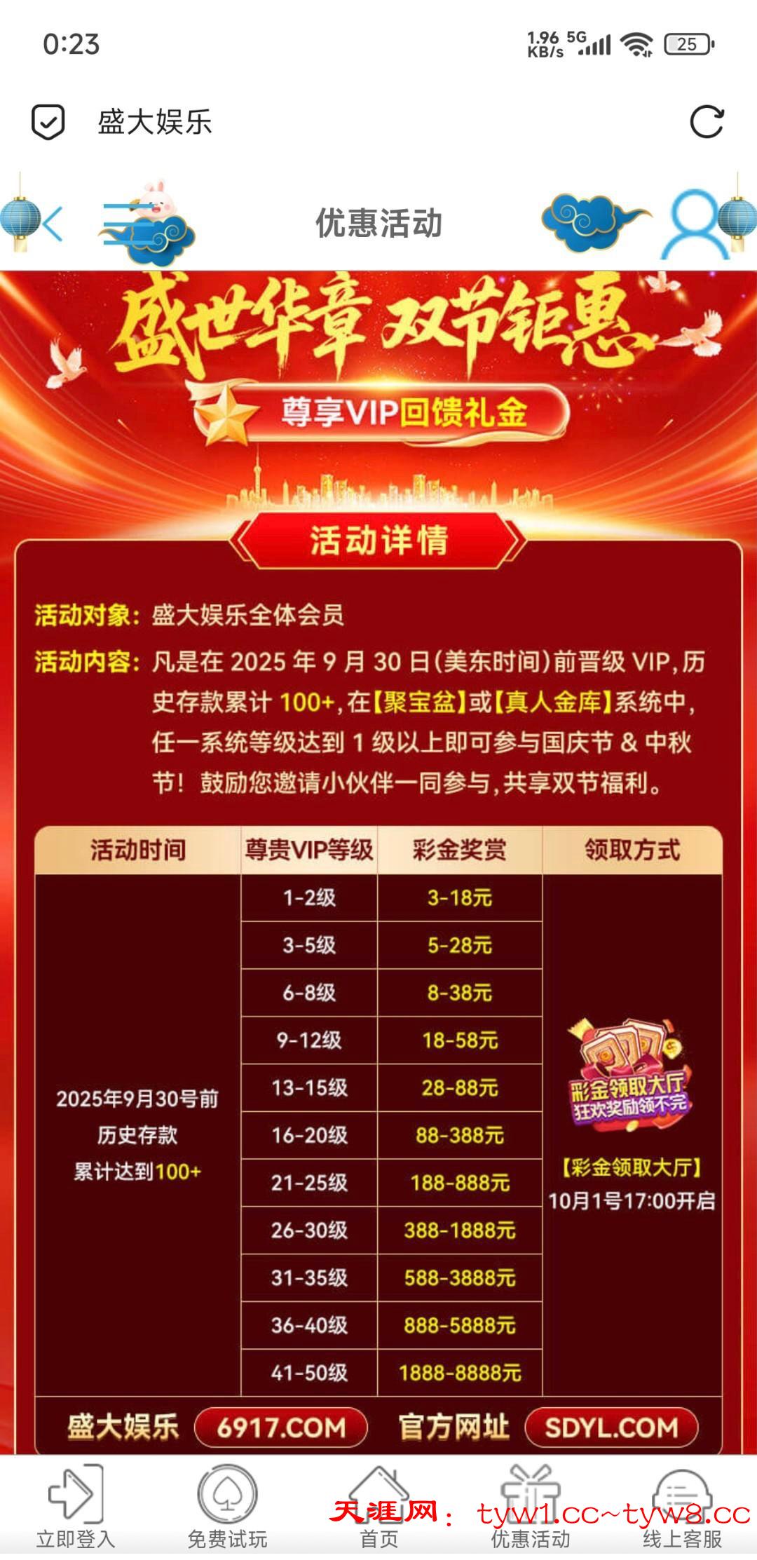 盛大娱乐 国庆回馈