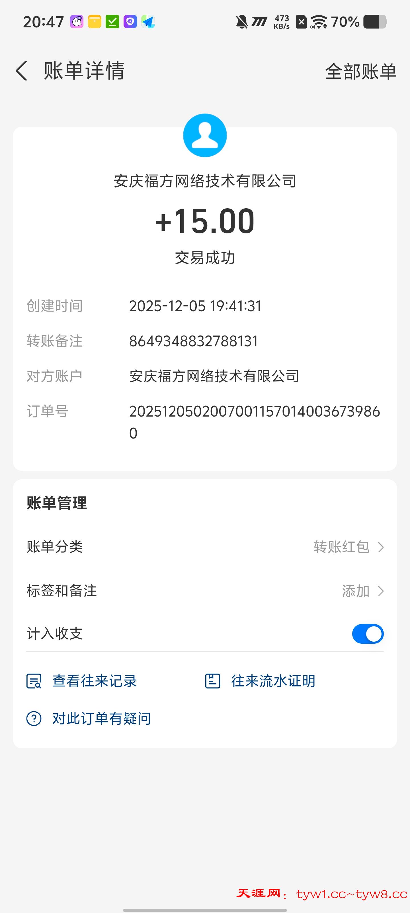 到账15