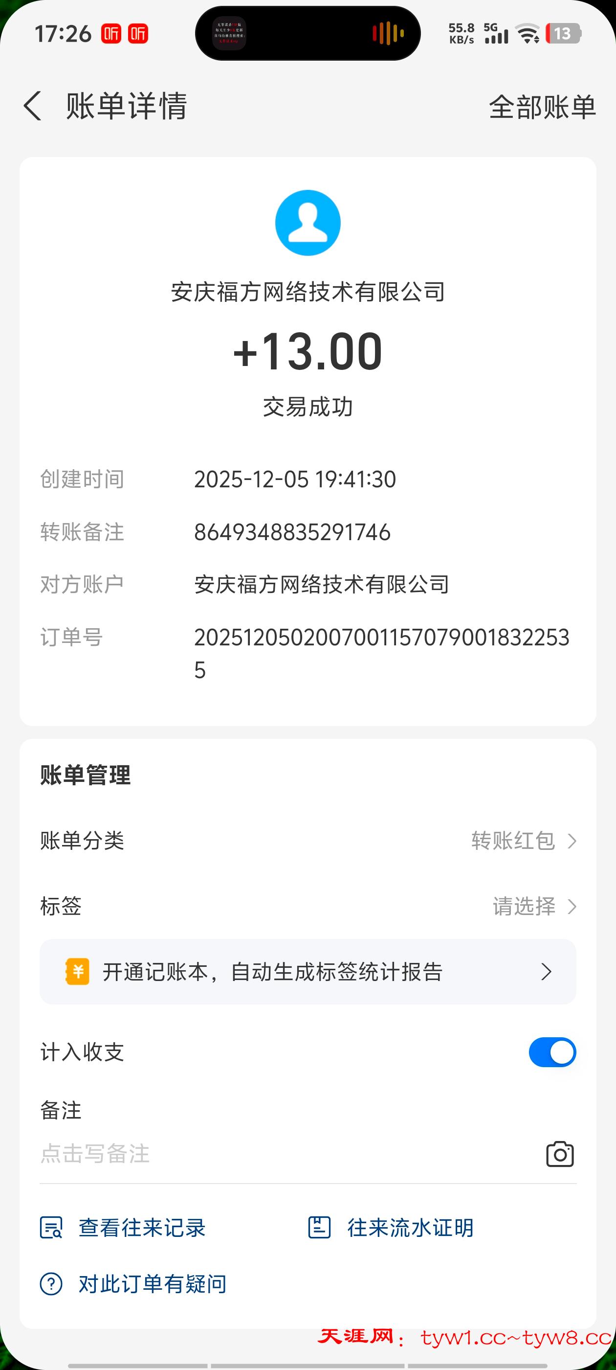 到账13,不会发图片谢谢怡怡