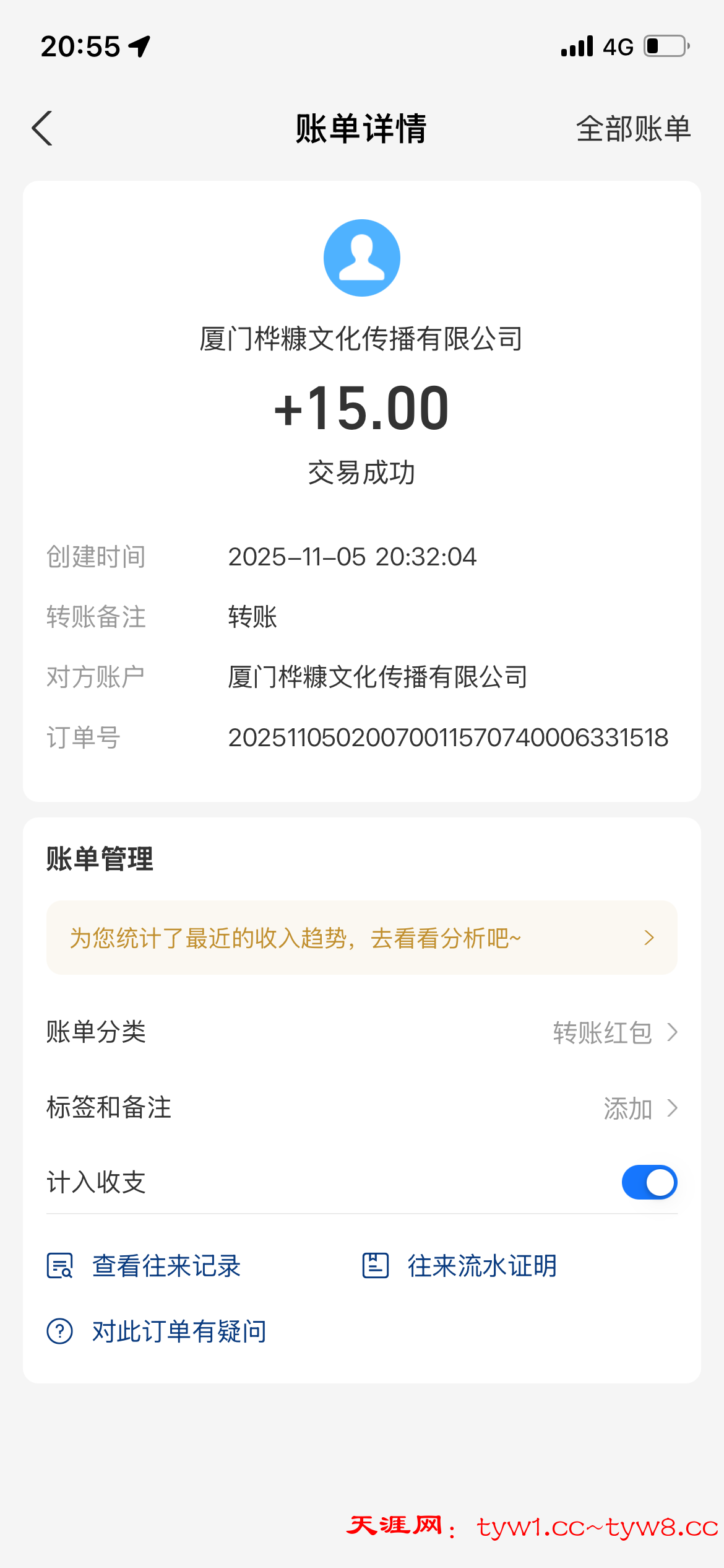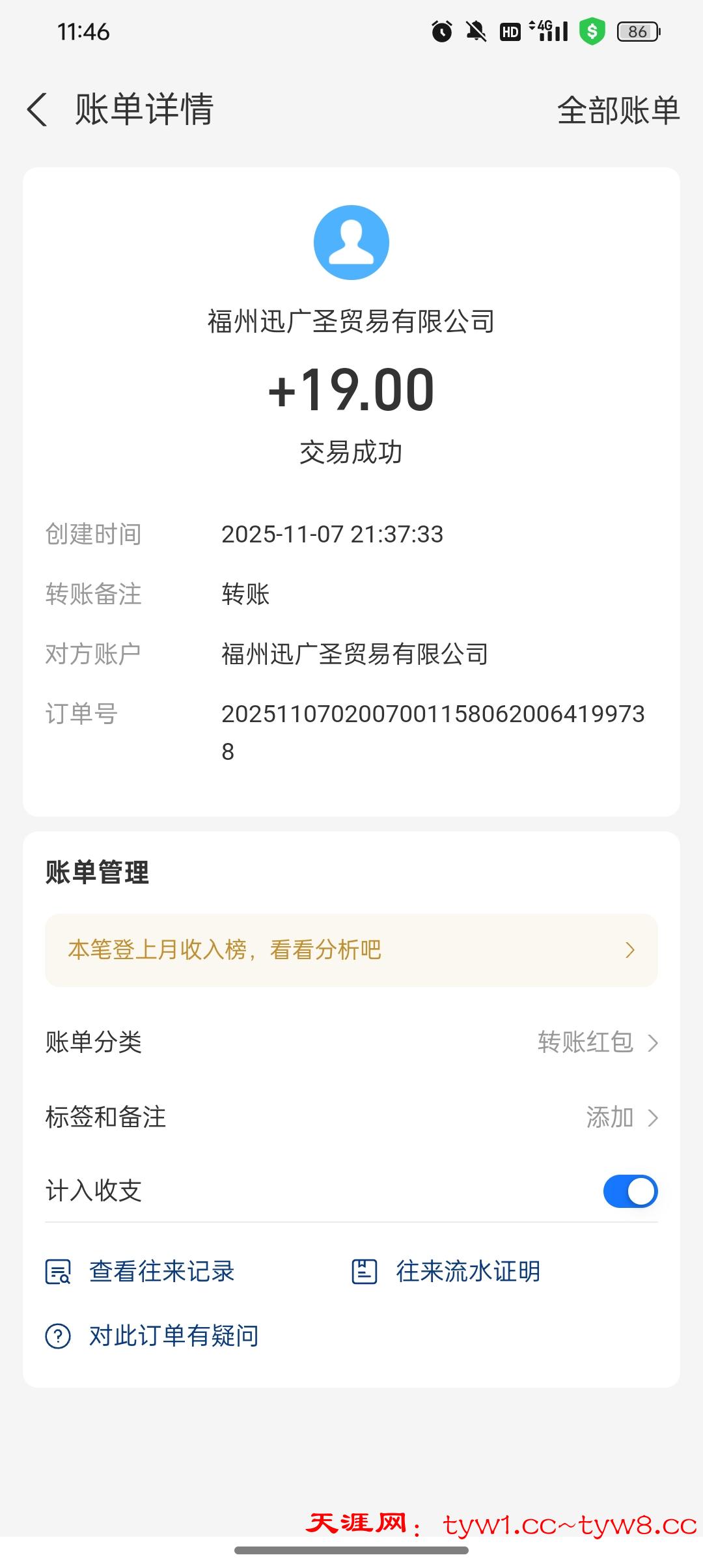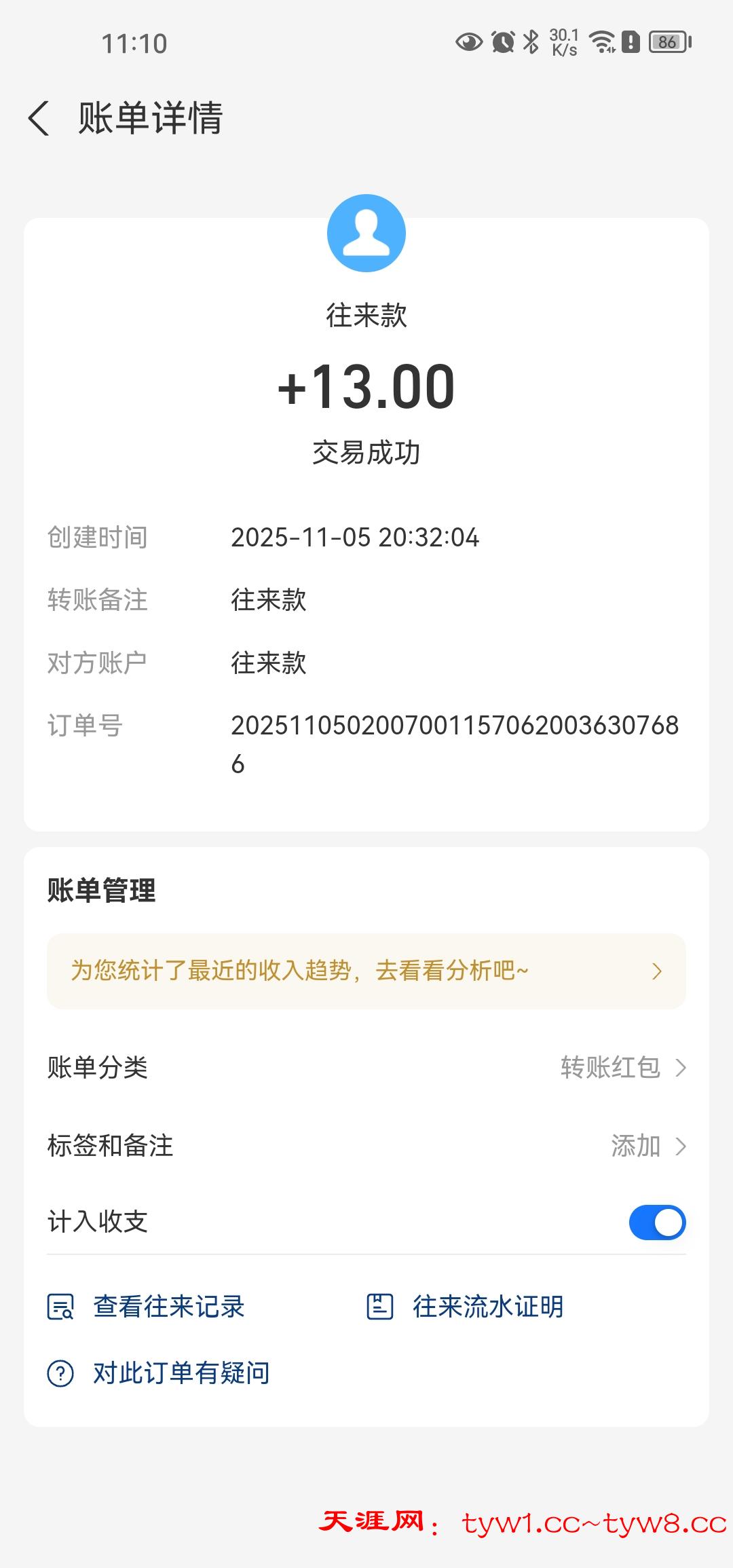 到账两包白沙+槟榔 感谢天涯