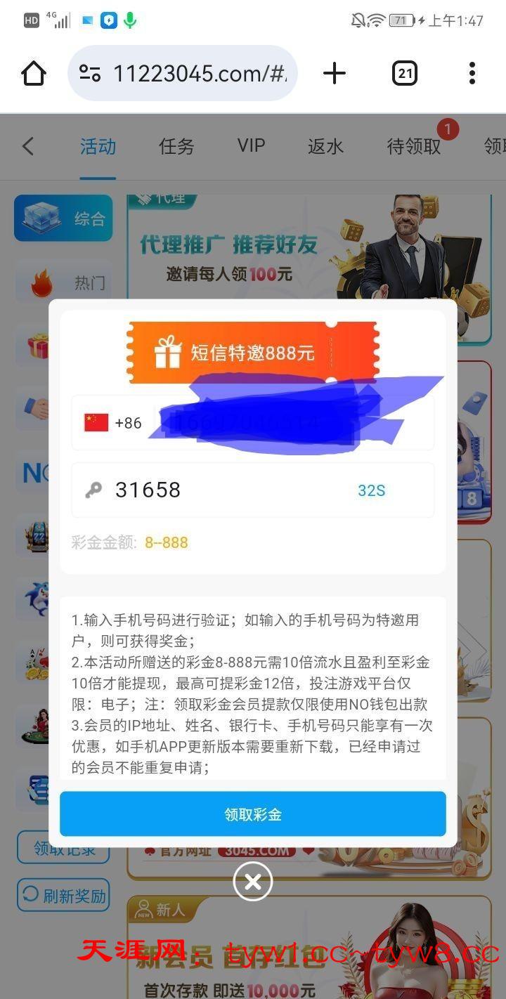 注册好之后优惠手机号验证领取网站 11223045.com