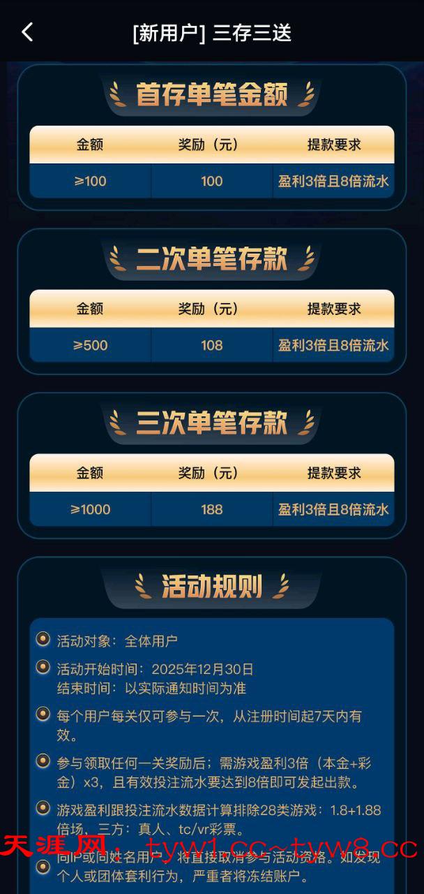 ✅ 新玩家周期内充值1500 流水 3500 以上 反688元 只有注册的对应周期存款才有,要官方平台过审的,可查验,多充多娱乐更容易达标,没有过审的补私人彩金188~388,为了避免多iP不要开加速器