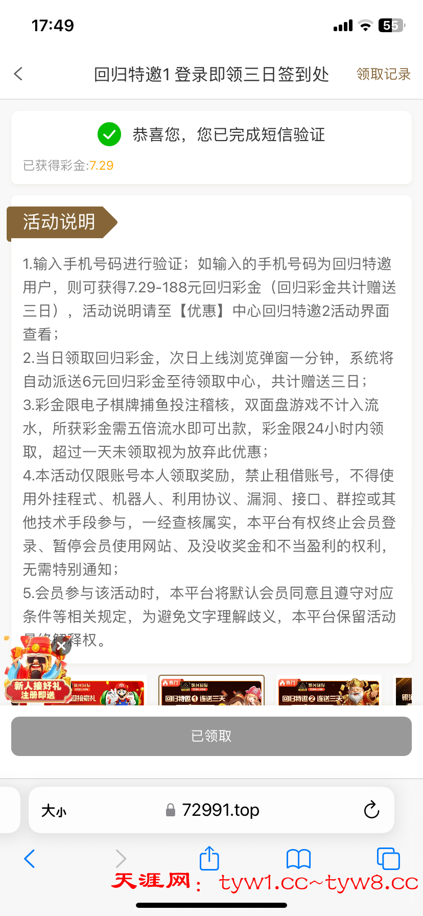 【新葡京72991】电话彩金说是送三天 今天领了一次