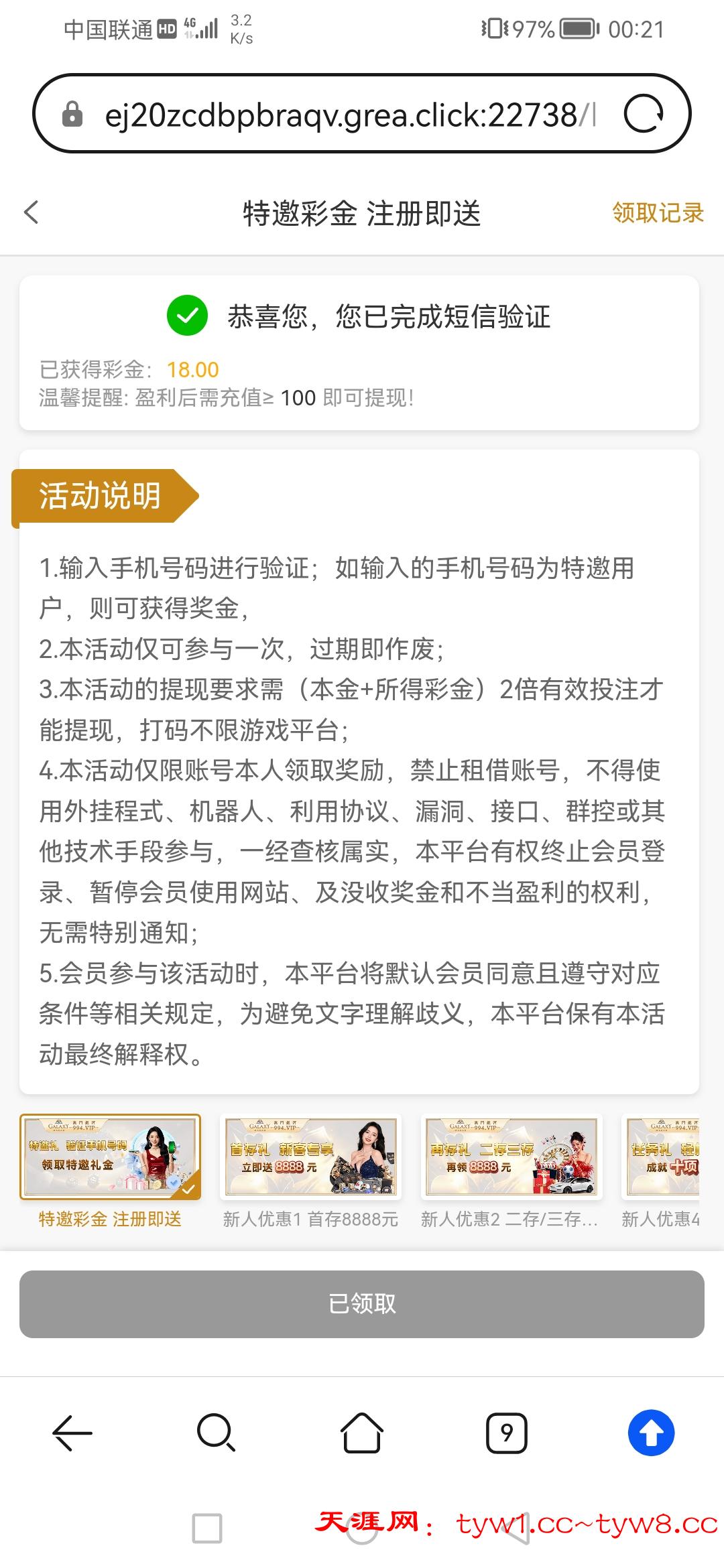 优惠→新人→查特邀送18