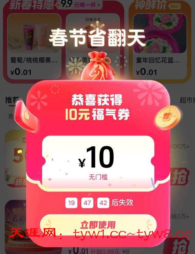 抖省省app下载 会弹10-15的无门槛券 可以买霸王 瑞幸团购等人人都可以0.01喝奶茶