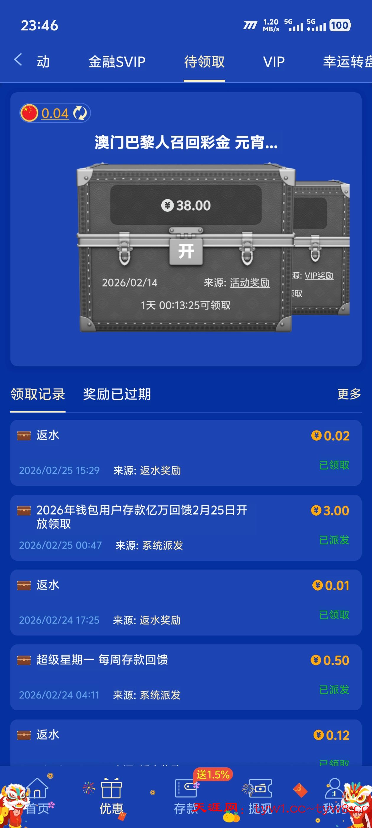 没看到有彩金
