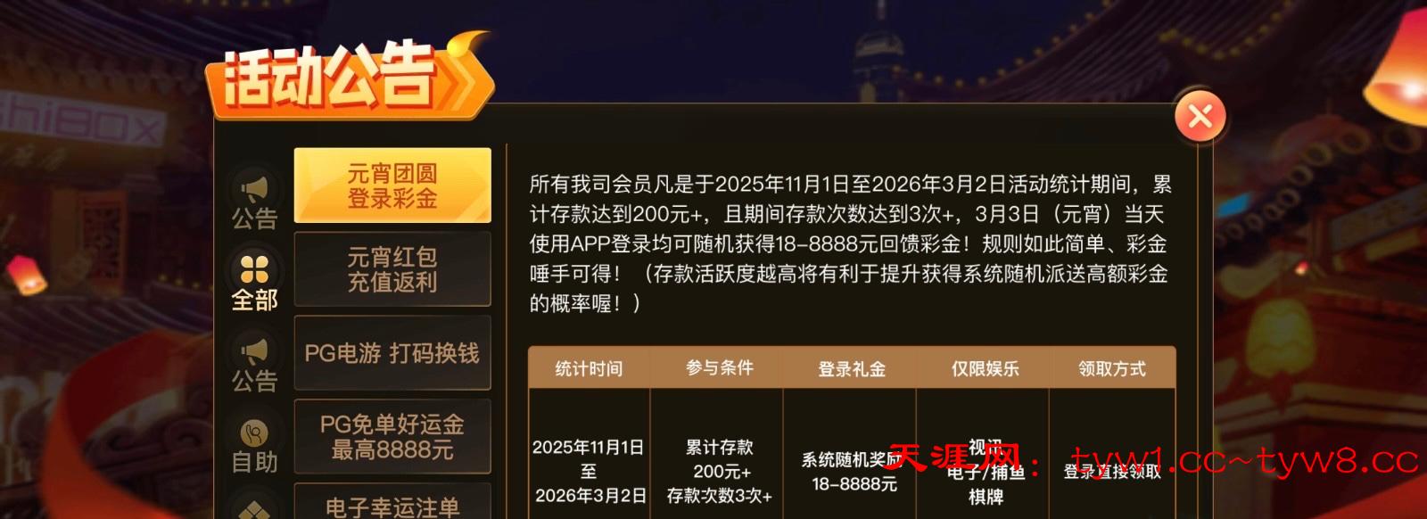 元宵彩金,符合条件即可领取。