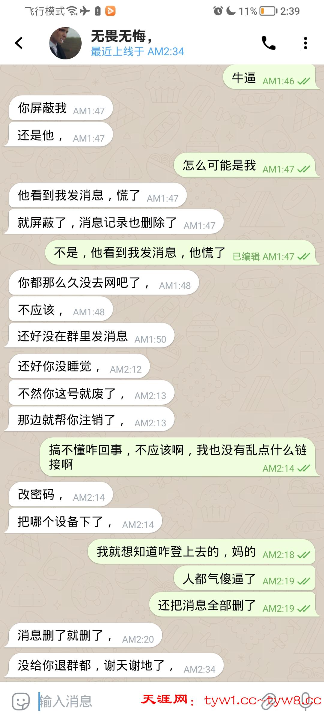 本人小飞机今天凌晨1.32被一台台湾ip电脑异地登录,上来就找了我联系人中的几个老哥借500u(包括怡怡),我是过了十几分钟上来才看到不对劲,有联系人莫名其妙发一些语言给我(电脑sw给联系人发的消息不会在手机上显示,但是手机可以收到对方回复的消息),我才知道我号出问题,然后我就手机即可联系在跟我聊天的老哥说不是本人,骗子看我上线了马上删除消息,还屏蔽联系人。我之前去网吧都会用电脑sw登陆,不知道是不是这个原因,但是有一点我搞不懂,我自己网吧登陆每次都需要手机sw对着扫码才能登上,不知道这个诈骗犯怎么登上的。