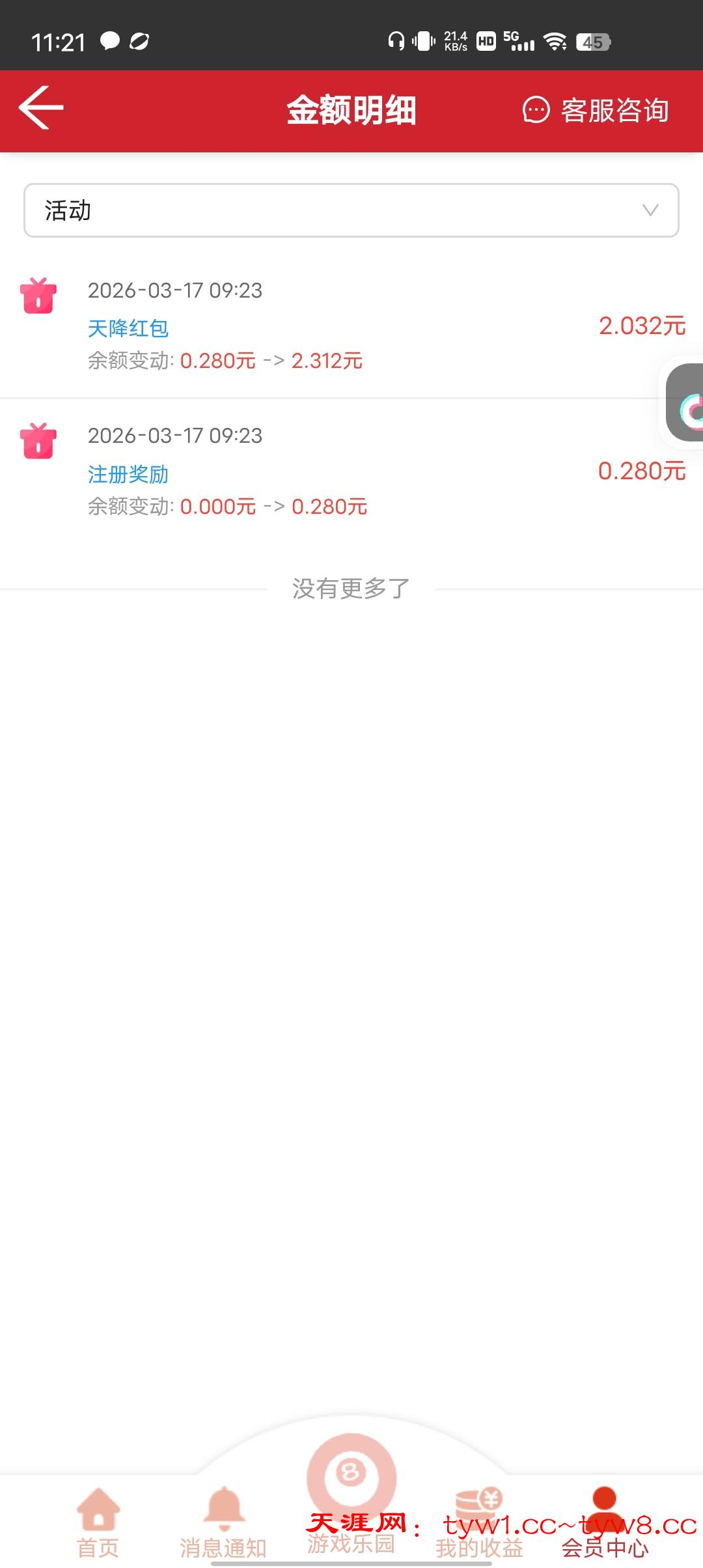 注册领了2块天降红包,提150不给提,打到288也提不了,领2块钱,要打288×15等于4300多流水,