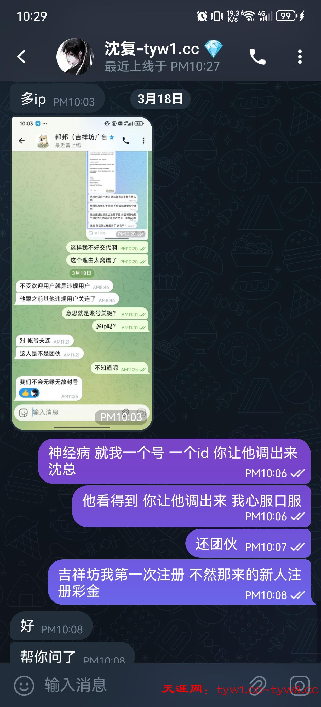 这个垃圾吉祥坊台子老哥们注意 让他出多id账号来看 也没有 然后直接说不受欢迎用户就这样敷衍了我跟沈总 等了一个星期 连200都不给 这有什么格局 还是感谢沈总 帮我一直问 狗庄不怎么敢回就敷衍 辛苦沈总 认准天涯网