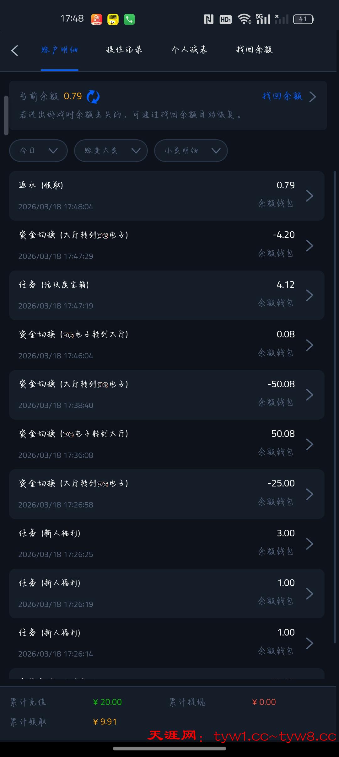 最低充值20完成所有任务可以领取10(最低100提)