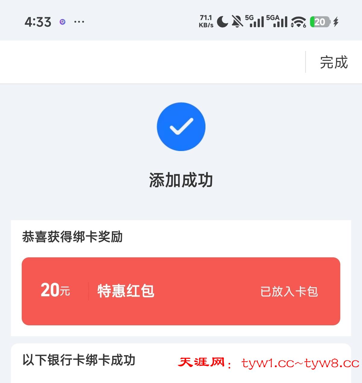 然后去zfb绑这张卡秒到20