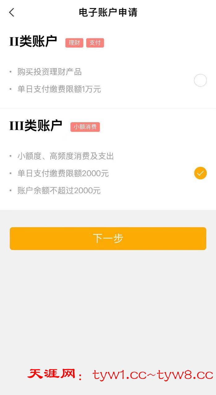 2.下拉到下面点击“开通电子掌户”,选III类掌户