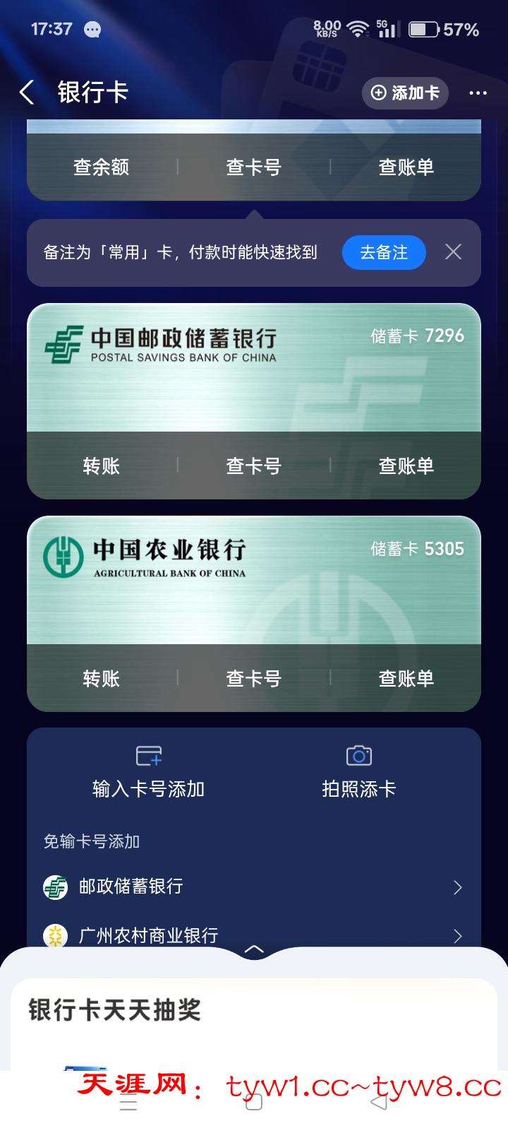 随便绑一张他行卡